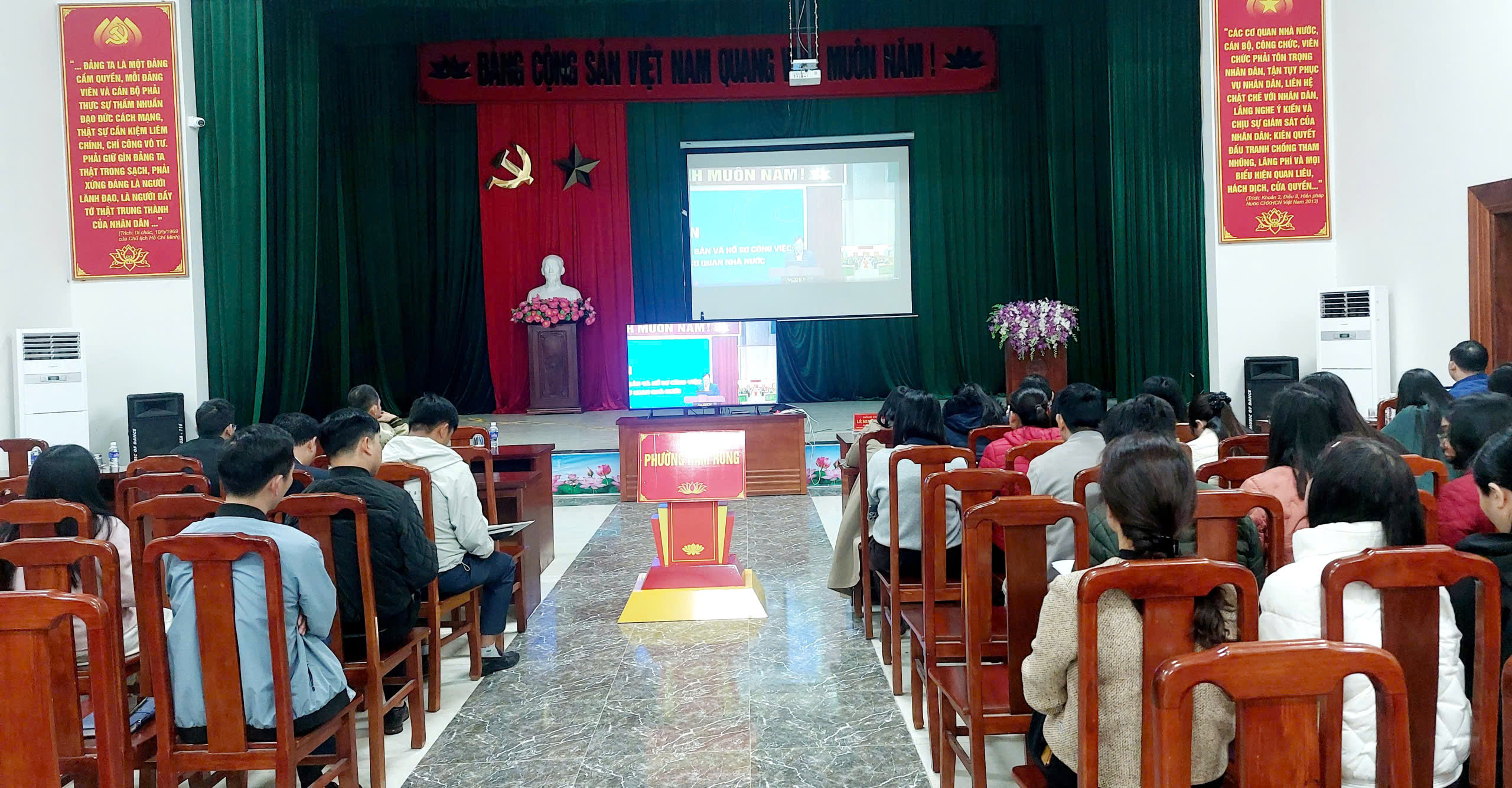 Sáng ngày 15/1, UBND phường Hàm Rồng đã tổ chức Hội nghị tập huấn hướng dẫn ứng dụng phần mềm One AI trong hỗ trợ soạn thảo, biên tập văn bản theo các lĩnh vực do Công ty Cổ phần Misa thực hiện. Đến dự lớp tập huấn có đồng chí Lê Thị Minh Tâm – Trưởng phòng Văn hóa- xã hội phường Hàm Rồng.